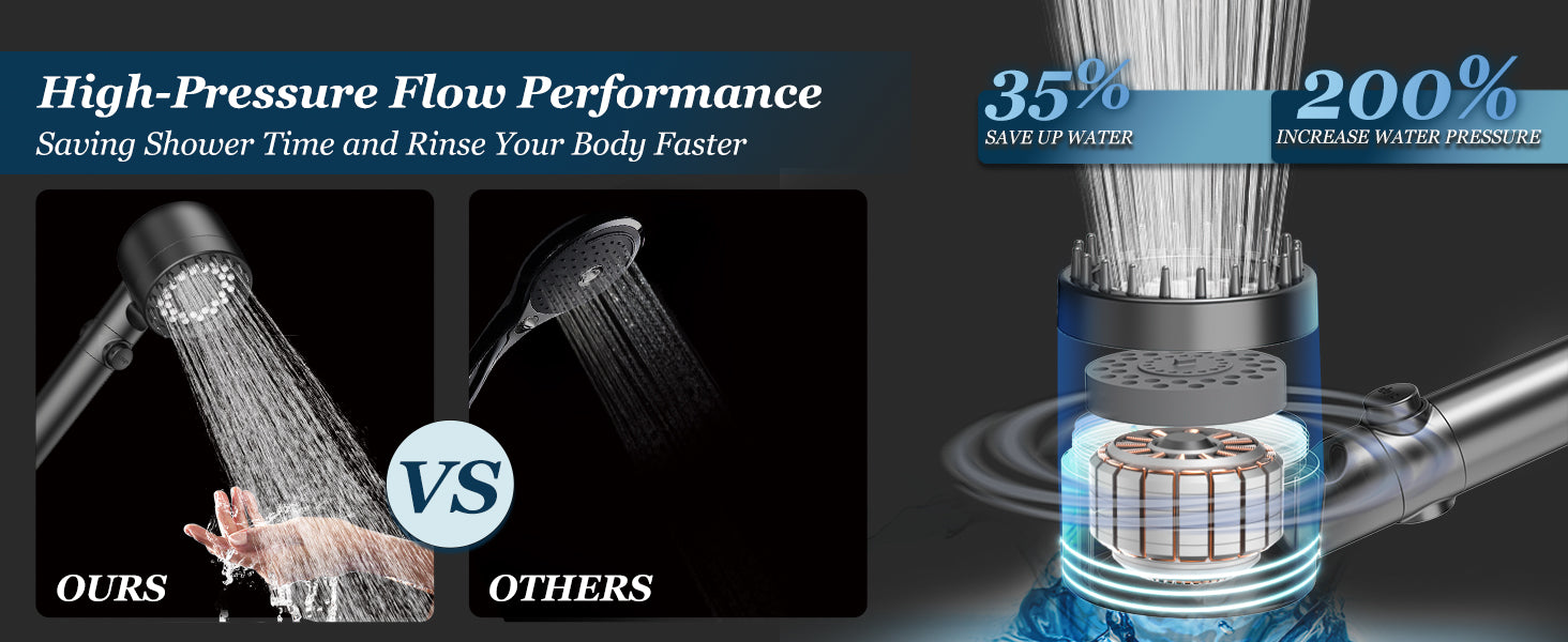 • 【Powerful & Efficient - High Pressure Water Saving Design for a Refreshing Shower】Engineered with a unique internal structure and advanced 4-hole soft silicone jet technology, this shower head boosts water pressure by up to 200% while cutting water usage by 35%, which means even in apartments or homes with low water pressure, you’ll enjoy a strong, consistent spray that rinses your body quickly and thoroughly. By delivering high performance with less water, it not only reduces your utility bills but also transforms your daily routine into a faster and truly refreshing shower experience