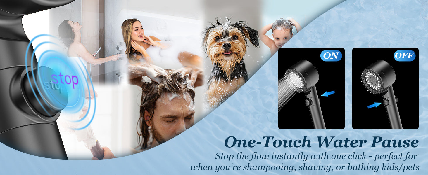 • 【Instant Water Control – One-Click Pause Function for Ultimate Convenience】Our advanced shower head features a smart one-touch pause button, allowing you to instantly stop water flow while shampooing, shaving, or bathing kids and pets—no more adjusting knobs. When you restart, the water instantly resumes at your preset temperature, eliminating the wait. This innovative design not only enhances convenience but also reduces water consumption by 20%-30%, leading to significant long-term savings on your water bills