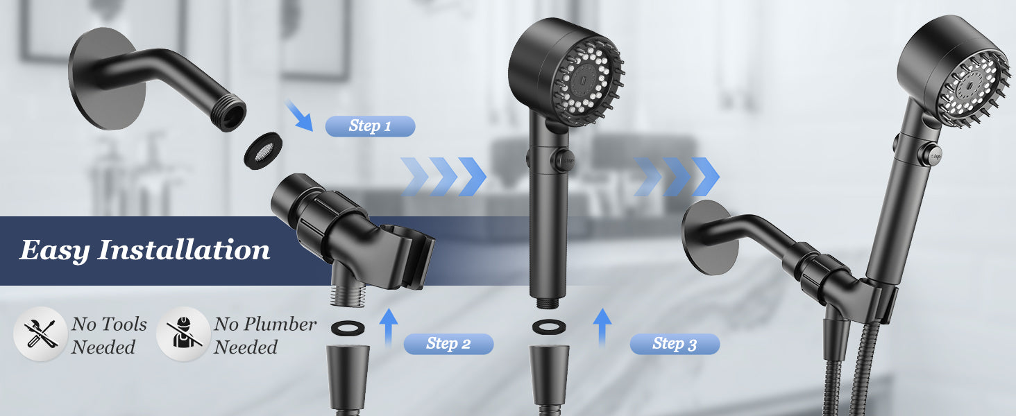 • 【4 Spray Modes – Find Your Perfect Shower Experience】Featured with 3 switchable shower spray settings (Rainfall, Mist, Mix)—no complicated settings needed, allowing you to easily customize your shower experience. But that’s not all, just detach the shower head from its handle, it will transform into a high-pressure power wash mode! You can quickly rinse large areas or blast away stubborn grime with ease. With this functionality, cleaning your shower, tub, tiles, even your pets, becomes faster and simpler than ever